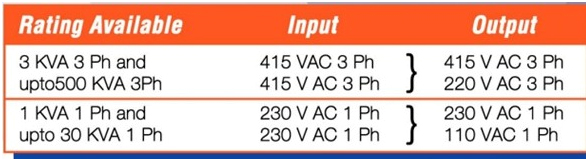 - System Connections : Delta/Star, Star/Delta, Star/Star